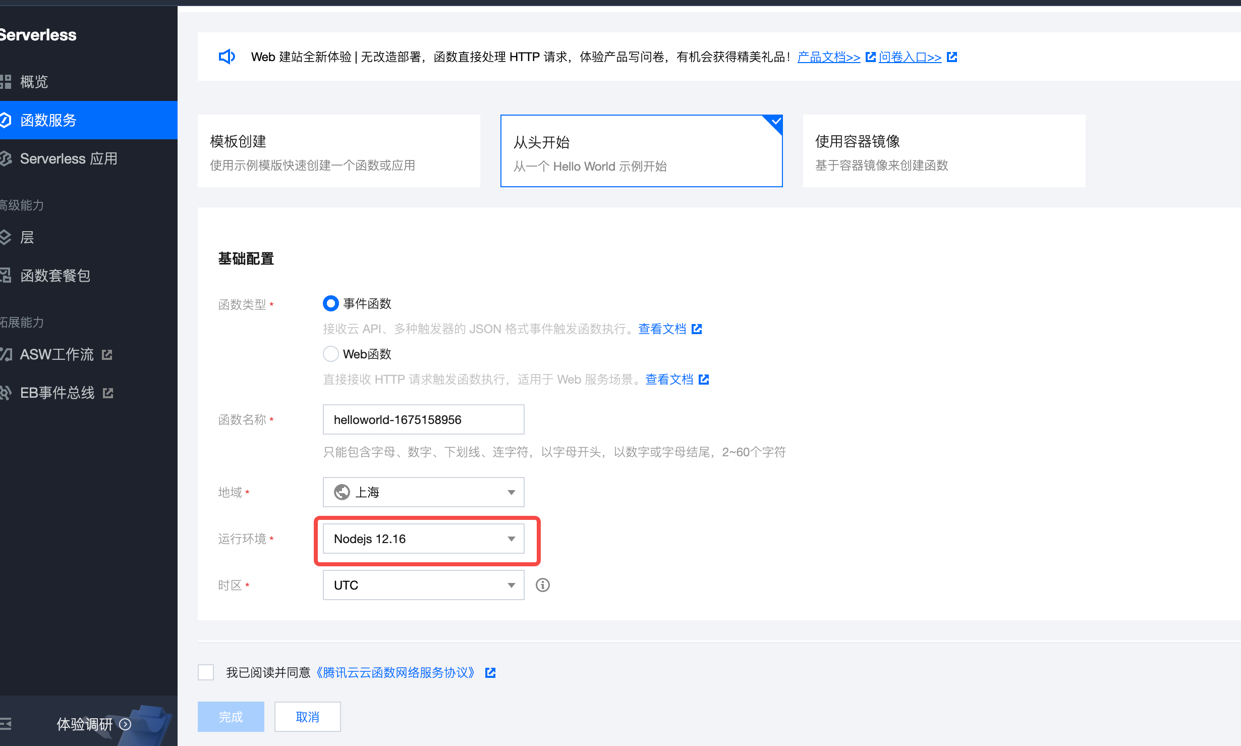 新建个云函数,我们只要做个接口转发,不用那么麻烦就不用模板了(作为前端 er 当然首选 node):