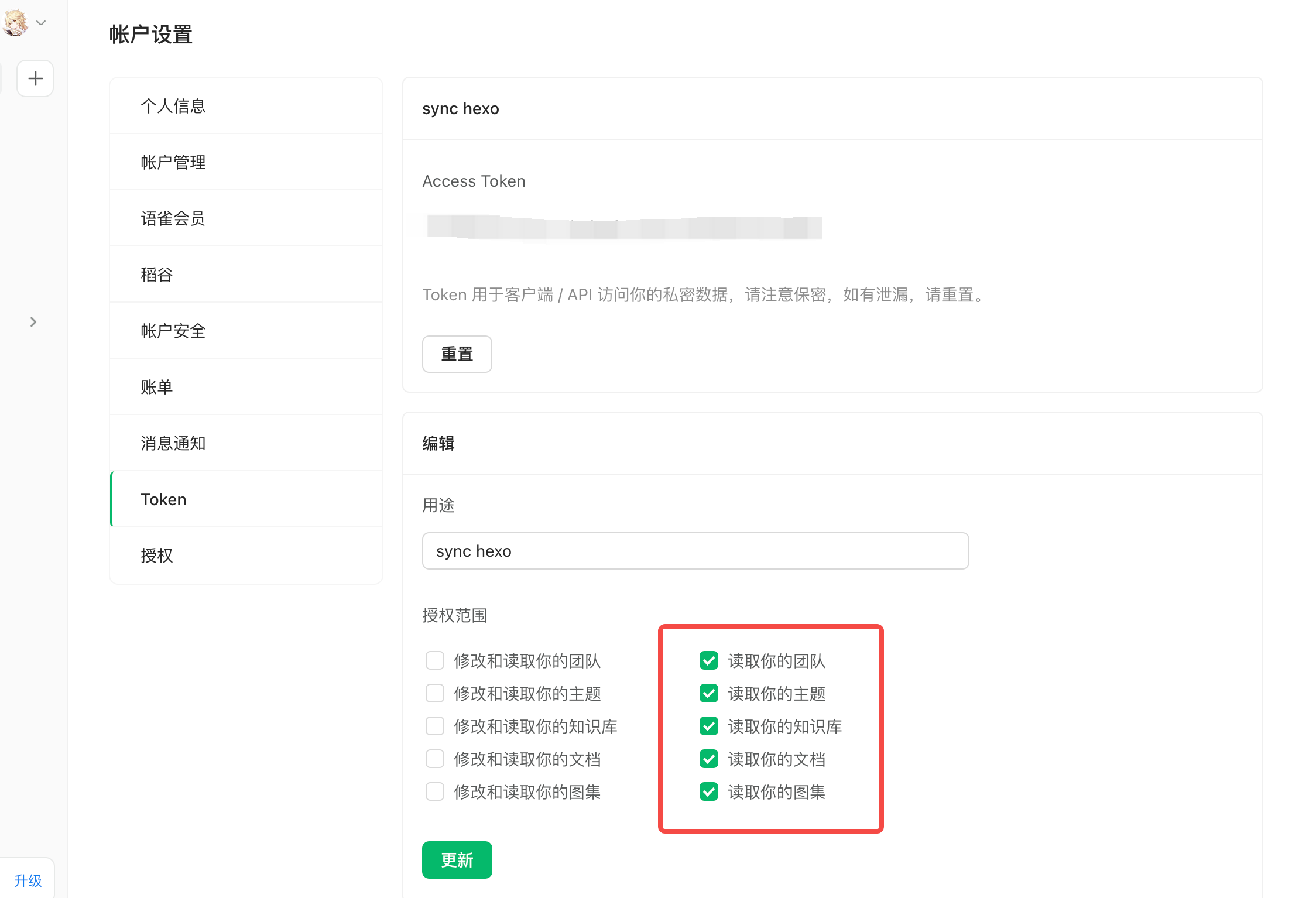 新增或使用现有的 Token,Token 给个读取权限就行了