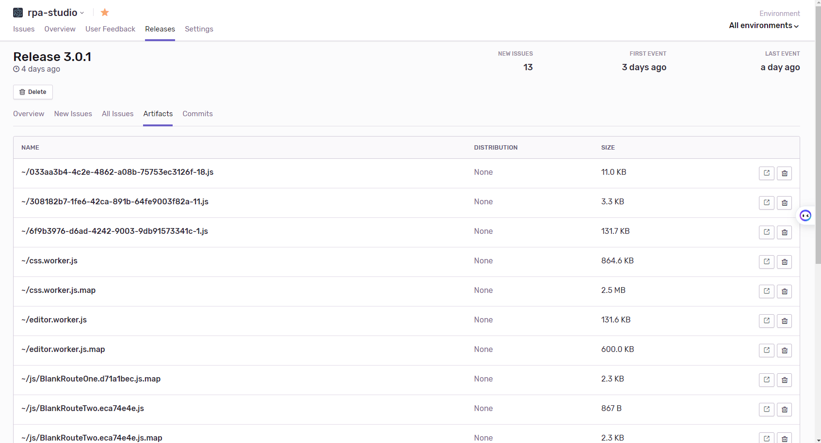 以上配置完成后,运行打包命令,就可以在 sentry 中看到上传的 source map 了