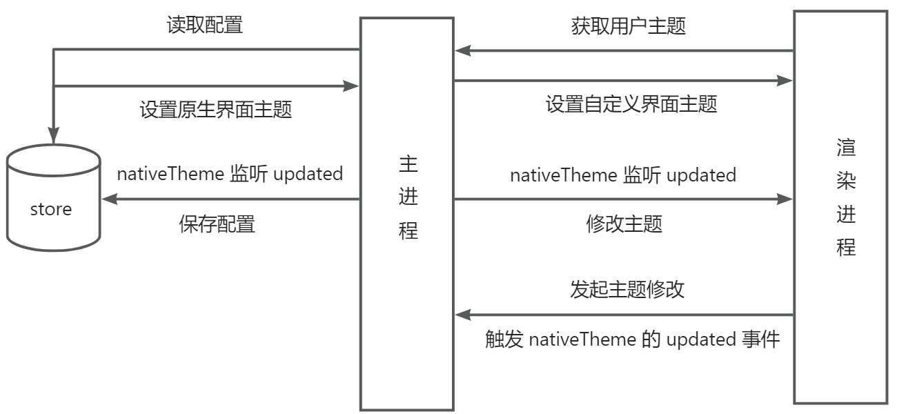 然后在主进程中添加事件处理函数,用 nativeTheme API 修改系统样式
